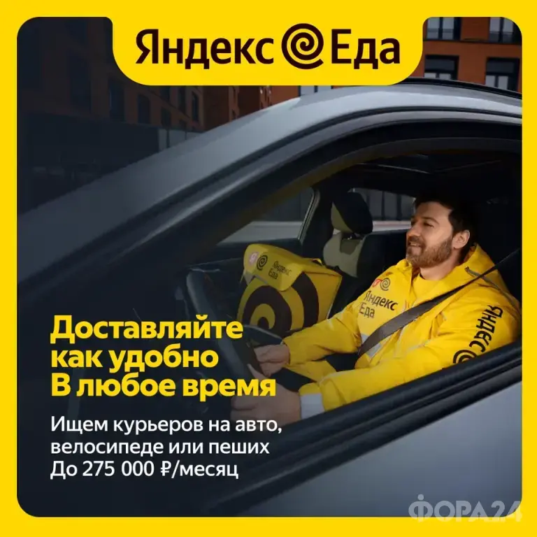 Партнер сервиса Яндекс.Еда приглашает к сотрудничеству курьеров.